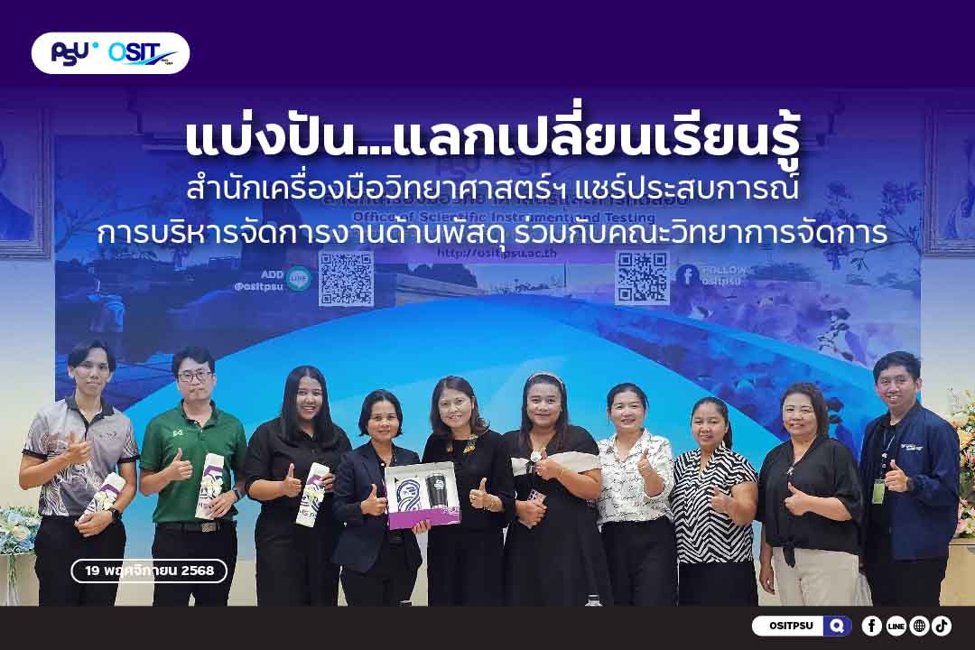 แบ่งปัน และแลกเปลี่ยนเรียนรู้..ด้านการบริหารจัดการพัสดุอย่างมีประสิทธิภาพวันที่ 19 พฤศจิกายน 2568 สำนักเครื่องมือวิทยาศาสตร์ฯ ม.อ. ร่วมแบ่งปันและแลกเปลี่ยนเรียนรู้ ระบบที่ใช้บริหารจัดการทรัพย์สินและพัสดุของหน่วยงาน กับงา... |